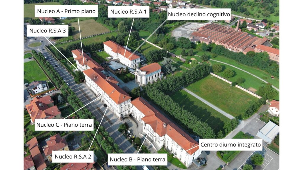 I padiglioni A e B sono composti da due piani fuori terra e al loro interno si trovano reparti R.A., R.A.A. e una nuova R.S.A da 20 posti letto.